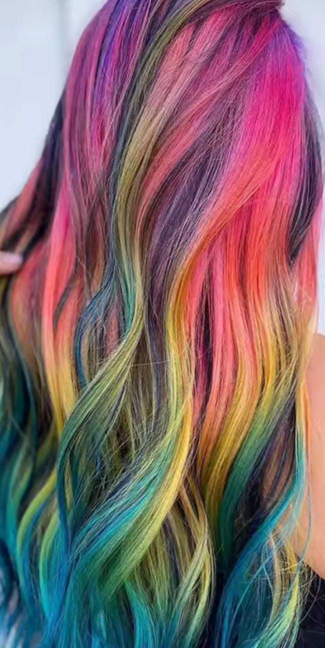 Verwandle deine Haare in wenigen Minuten in ein buntes Statement – ganz ohne Färben.Einfach durchkämmen, Farbe genießen und später problemlos wieder auswaschen.
